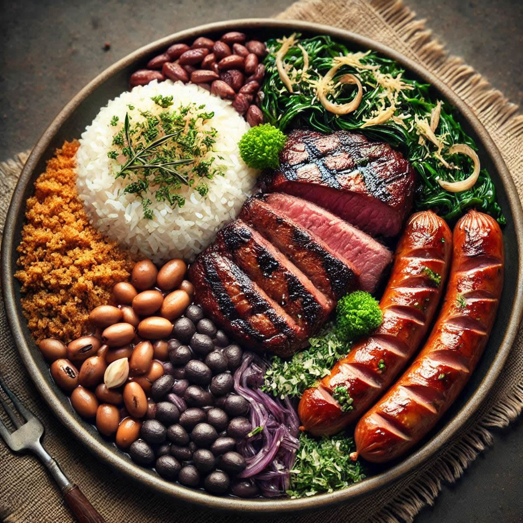 Arroz branco, feijão temperado, couve mineira refogada, carne assada suculenta e linguicinha mineira defumada, finalizados com farofa crocante. Um prato robusto, cheio de sabor e tradição, com o toque acolhedor da verdadeira comida caseira mineira.