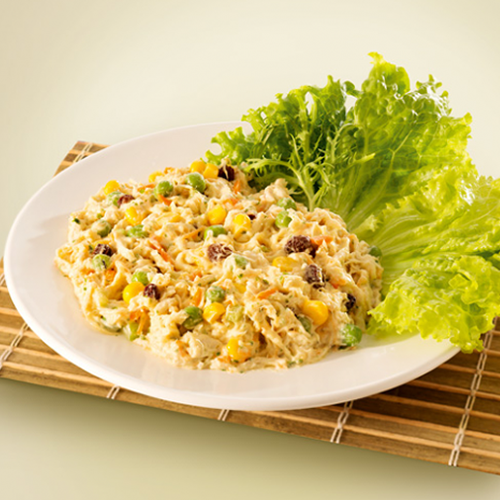 Um pratinho leve e muito saboroso! Salpicão de Frango com Batata Palha e uma Saladinha Simples de Alface, Tomate e Cebola.