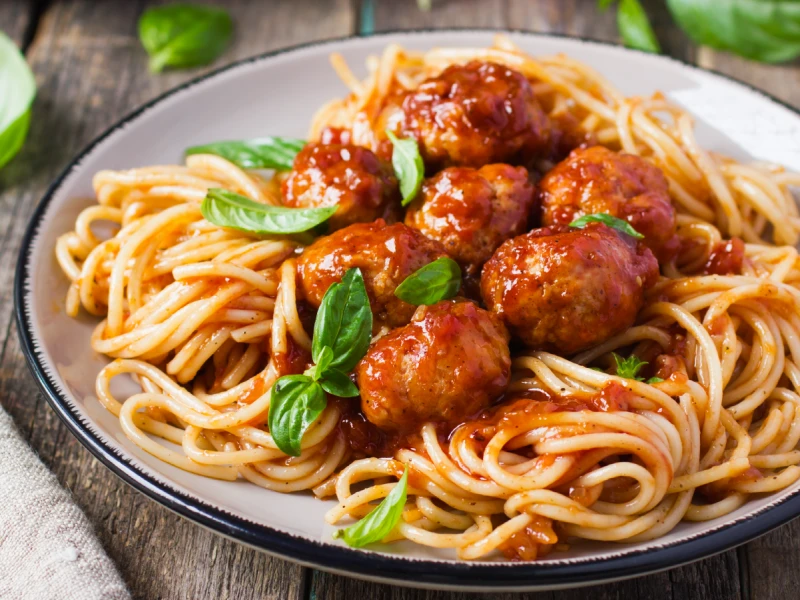 Espaguete italiano al dente, com molho ao sugo, generosamente servido com almôndegas macias, suculentas e saborosas. Ideal para quem busca uma refeição substanciosa e repleta de sabor.