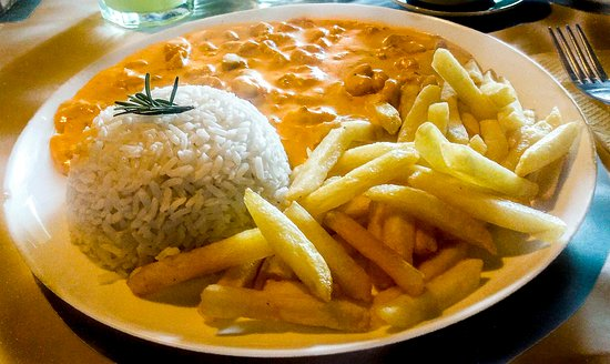 Prato típico da cozinha baiana, com camarões saborosos no creme de mandioca, temperado com azeite de dendê e leite de coco. Acompanha arroz branco, batata frita crocante e farofa. Um prato marcante, aromático e cheio de sabor brasileiro.